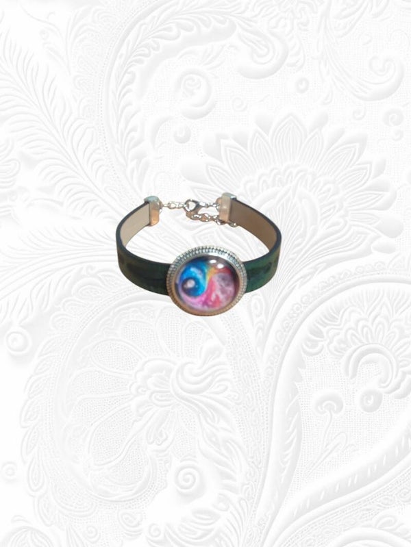 Bracelet en cuir PU avec chaine de rallonge en 5 couleurs : noir, bleu marine (très foncé), rouge (un peu foncé), marron et vert.